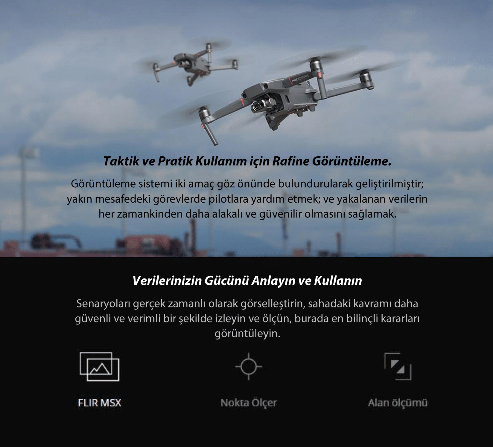 Dji drone ile birlikte operasyonları gerçek zamanlı olarak görüntüleyebilirsiniz. Aynı zamanda site üzerinde daha emniyetli ve performanslı bir biçimde objeleri denetleyebilir ve ölçebilirsiniz. Böylelikle daha doğru kararlar alabilirsiniz. Dronun sahip olduğu genişletilmiş bağlantı noktası, ilave cihazların dronun üzerine bağlanmasına ve farklı kritik vazifelerde çok daha iyi sonuçlar gerçekleştirmenize yardımcı olmaktadır.