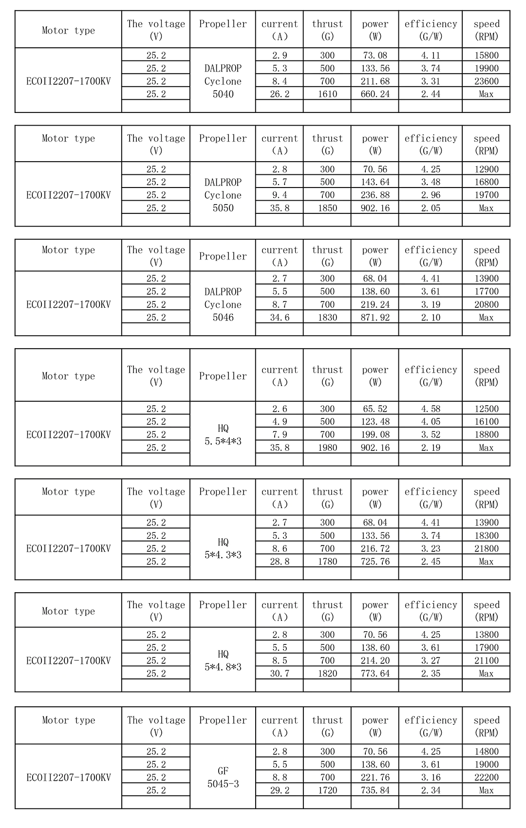 Emax Eco II 2207 | 6S 1700 KV Fırçasız Dron Motoru Teknik Detayları
