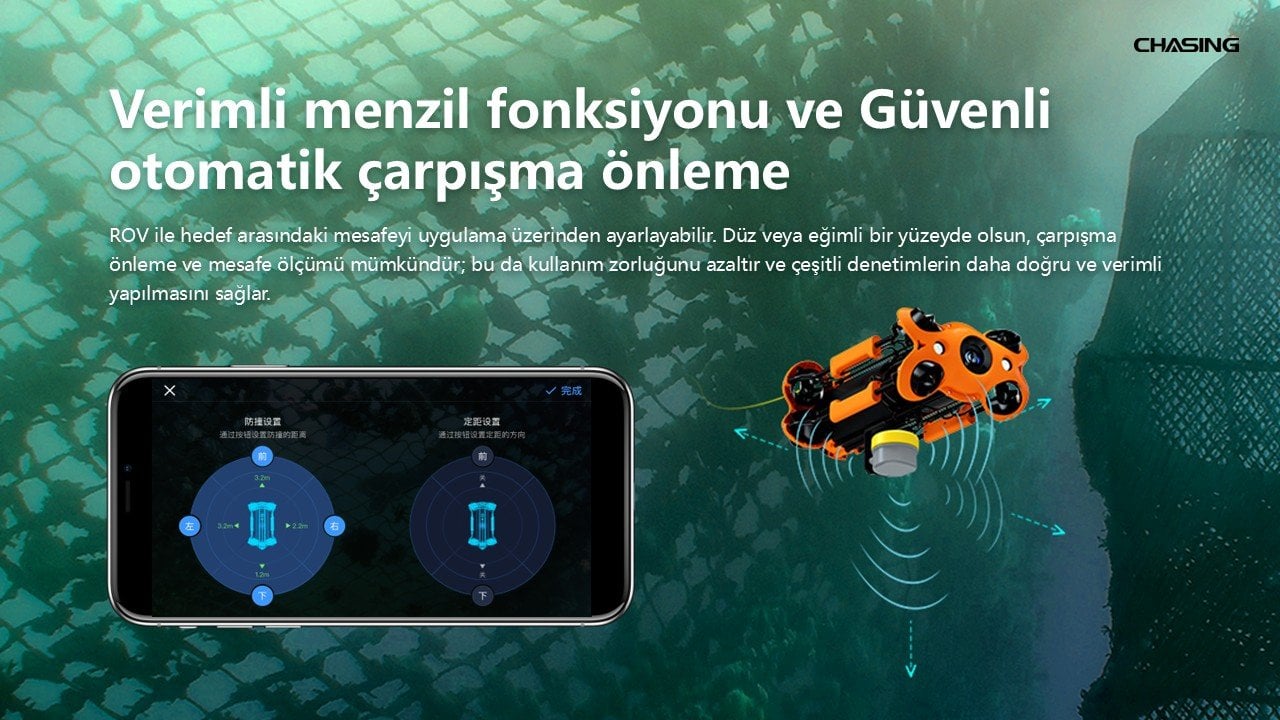 Otomatik Çarpışma Önleme: Su altında güvenli operasyon için engellere karşı otomatik koruma.